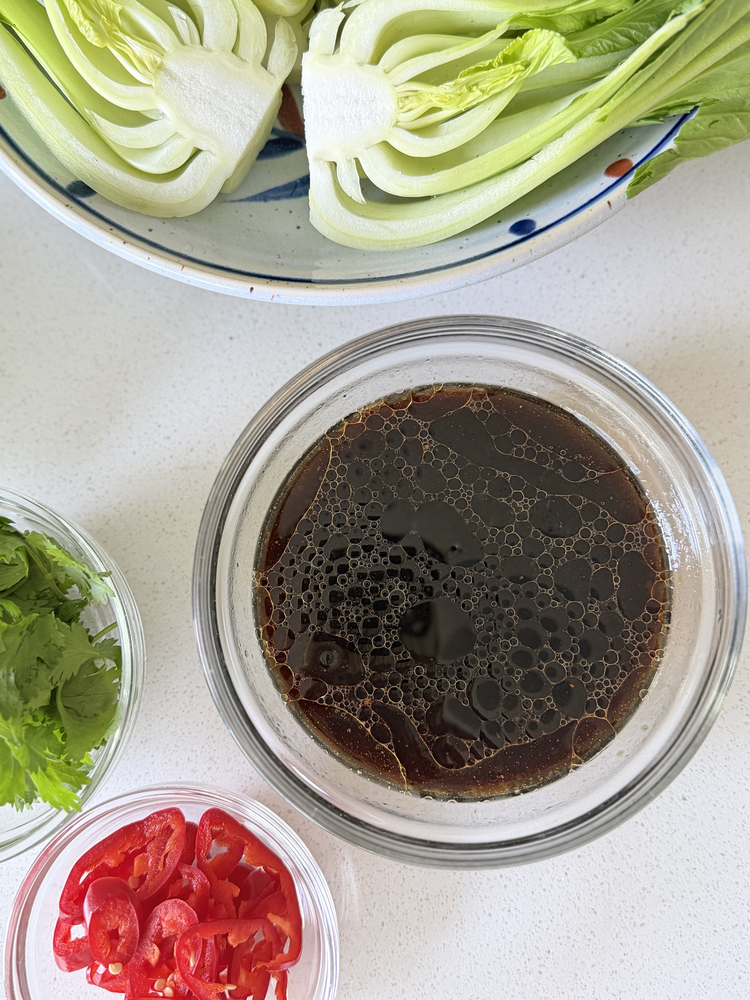 Sauce is a simple mix of Tamari Soy Sauce, Mirin, Lemon & Toasted Sesame Oil