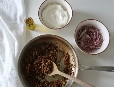 Labneh, Lentils, Quick Pickled Onions and Olive Oil